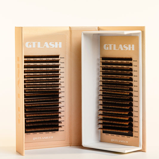 Pick the tray that elevates your artistry: Ellipse (Flat) Lashes for stronger retention, Cashmere Volume for feather-light fans with rich black finish, Colored Lashes for accents that pop, and Brown Lashes for soft, dimensional looks clients can’t stop requesting.